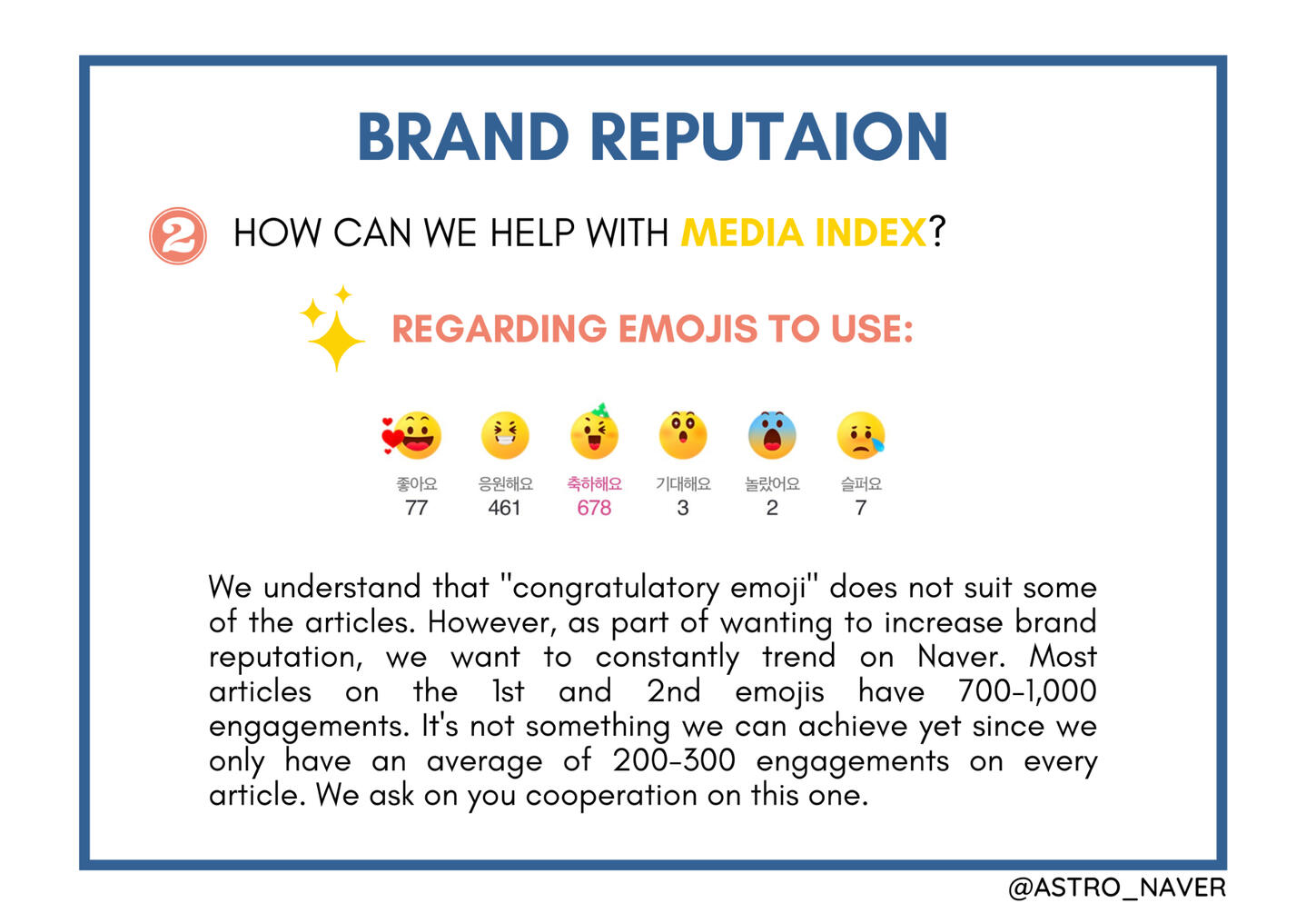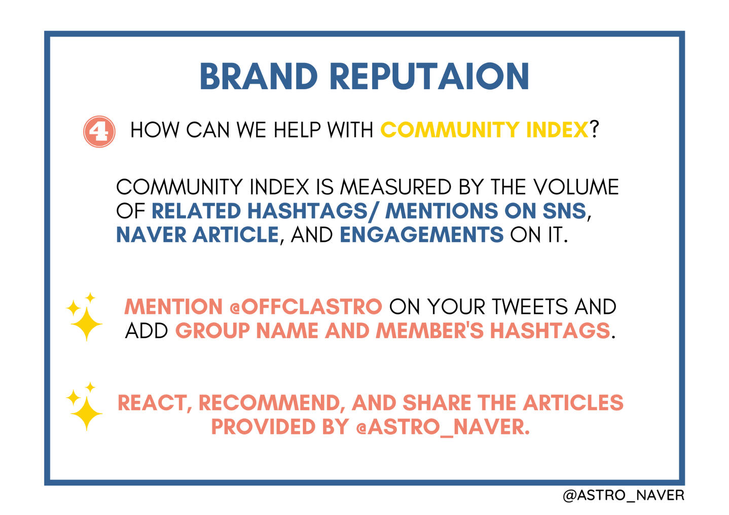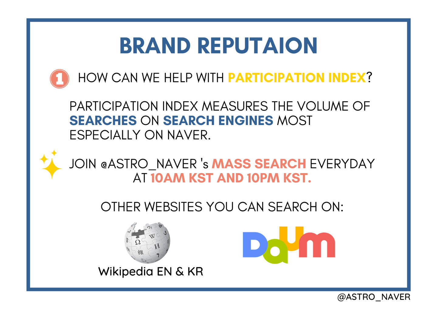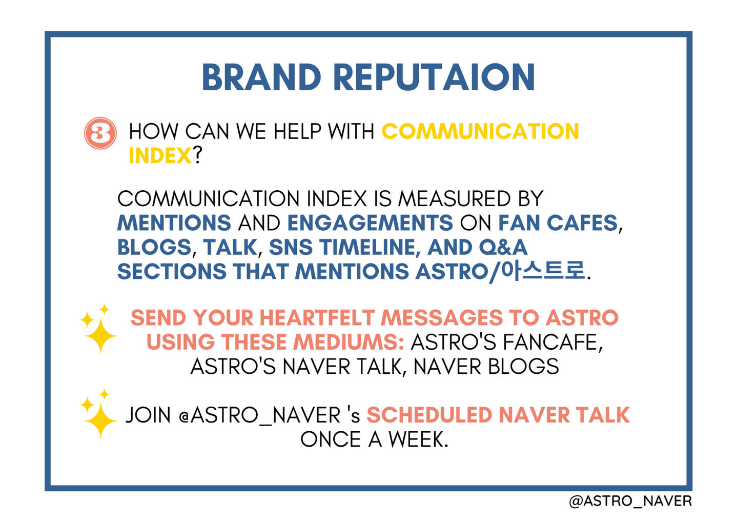 Here are some Naver projects we did/ are currently doing to help boost Astro's brand reputation during the non-comeback season. We hope for your participation!